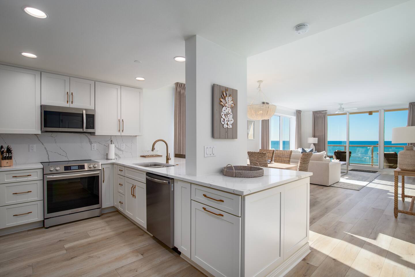Welcome to our newly remodeled 3-bed, 3-bath 4th Floor Condo! Recently updated to provide you with a comfortable and stylish vacation experience. The condo features three bedrooms two w/ King Beds, each with its own bathroom, allowing for privacy and convenience. The living area is spacious and perfect for relaxing after a day at the beach. Located in Navarre Beach, you'll have easy access to the stunning white sandy beaches and crystal-clear waters of the Gulf of Mexico.